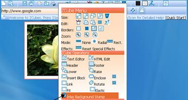 | 1. Create a ZCube. Right click on the ZCube and click 'Inlay Background Stamp'. | |