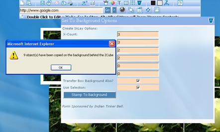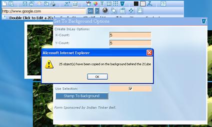 | 2. Select the grid size of the stamp (X-Count and Y-Count), the spacing (X and Y) between the stamp, and the location of the stamp (in reference to the location of ZCube). Click 'Stamp to Background' to create the inlay on the background. | |