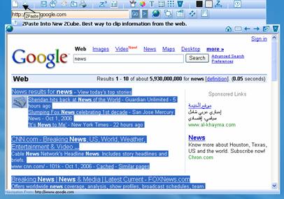 | 1. Enter a web address in the URL bar and click 'Go' to navigate to the URL in the ZBrowser. Copy the desired contents from the website and click 'ZPaste' on the power bar. | |